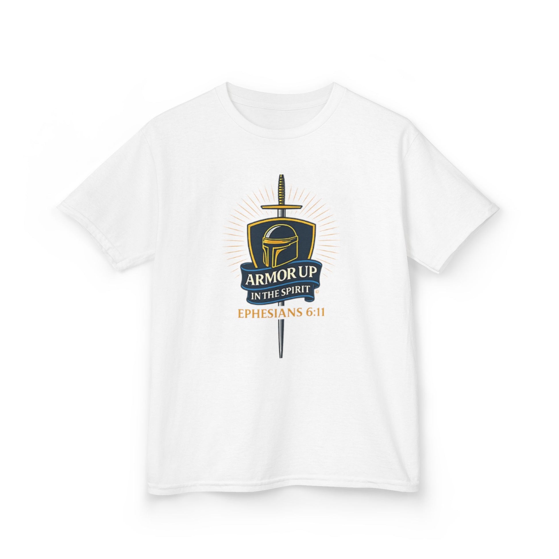 Armor Up (Blue & Gold Lettering) Kids Inspirational T-shirt