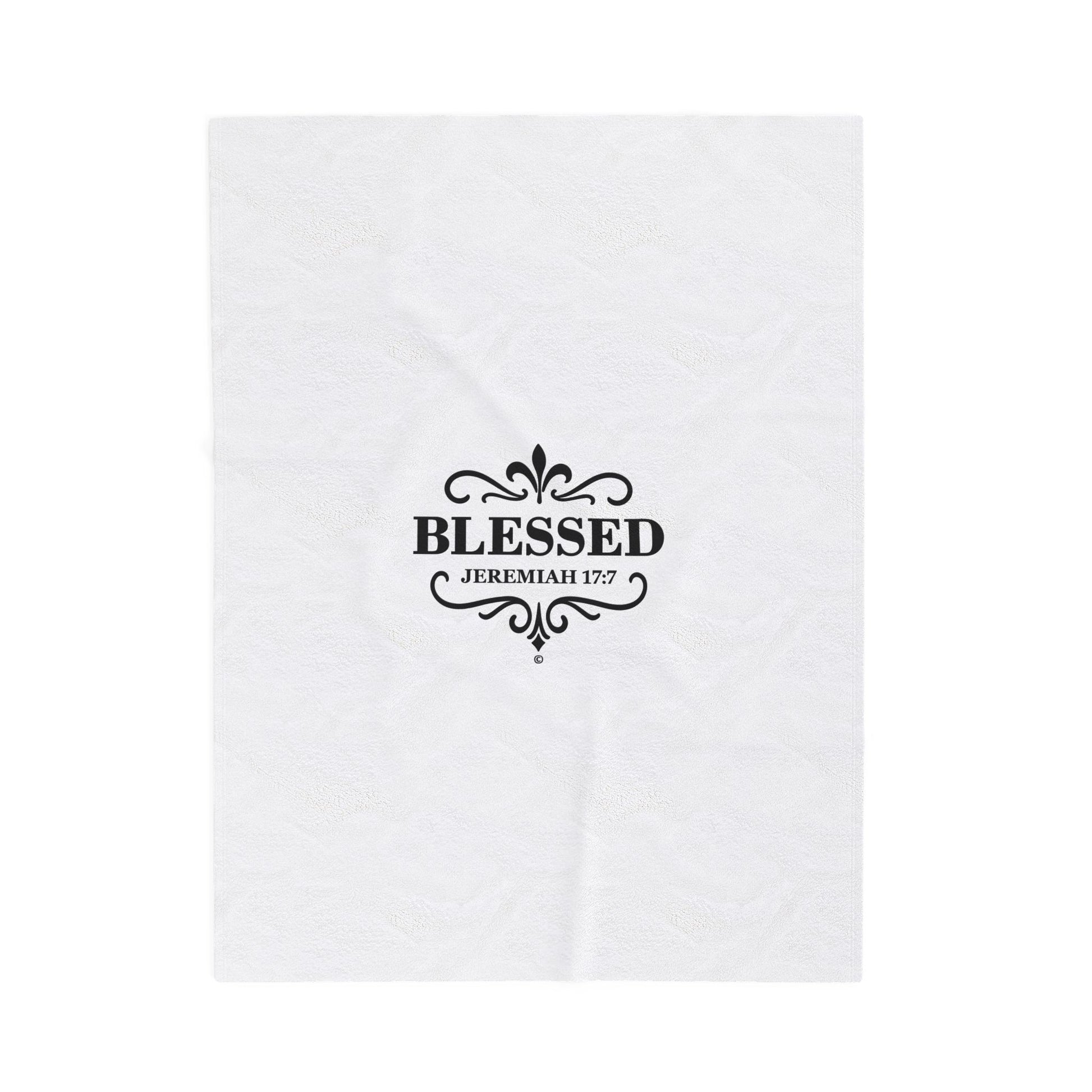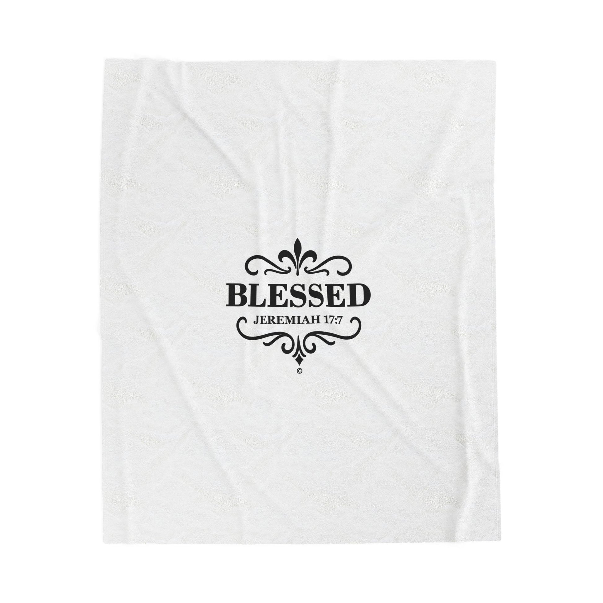 Blessed (Black Lettering) Plush Blanket, Inspirational Home Decor, Faith-Based Decor, Modern Plush Blanket