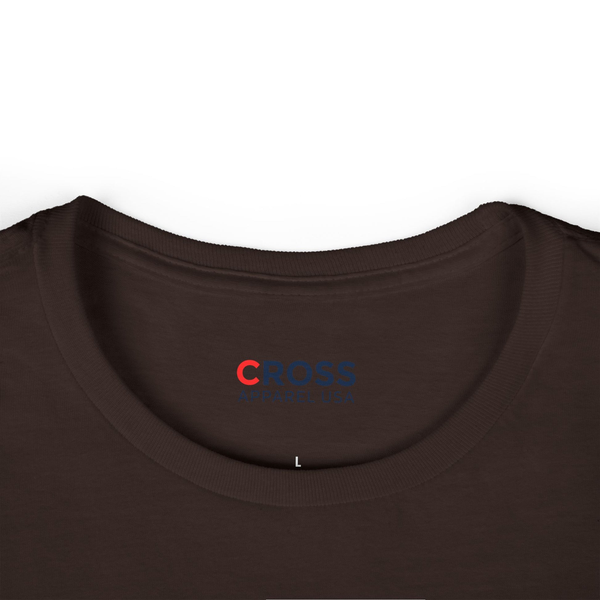 The woman's softstyle tee is a more feminine take on the classic tee. The sleeves are shortened to reveal some shoulder. The fabric is 100% ringspun cotton for all solid colors. The shoulders are taped with twill to prolong durability. The collar seam is reinforced with ribbed knitting.