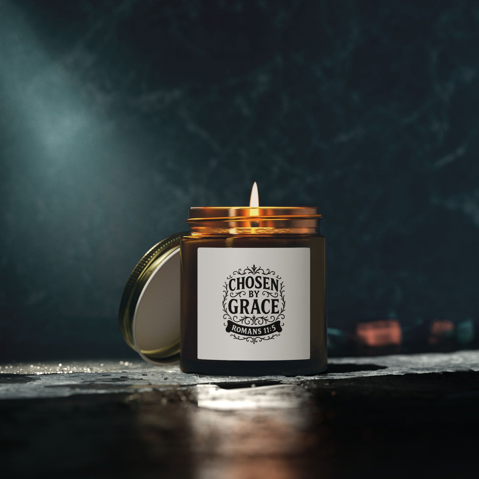 Chosen by Grace (Black Lettering) Scented Candle - Coconut Apricot Wax, Inspirational Home Decor, Relaxation, Gifts for Believers