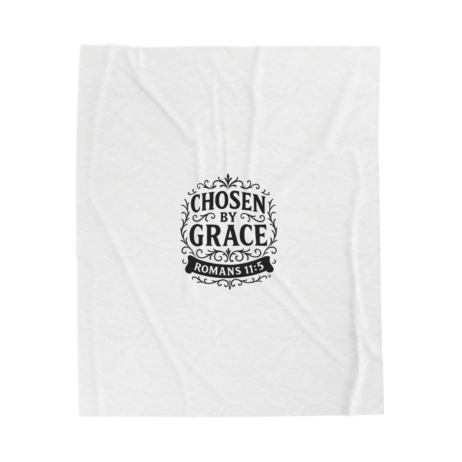 Chosen by Grace (Black Lettering) Plush Blanket, Inspirational Home Decor, Faith-Based Decor, Modern Plush Blanket