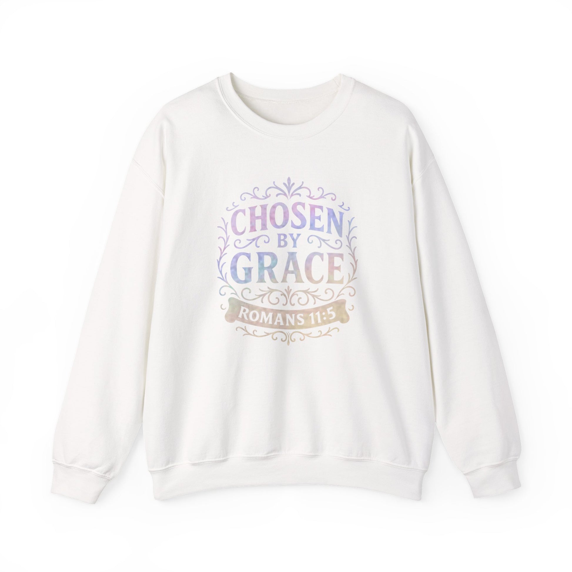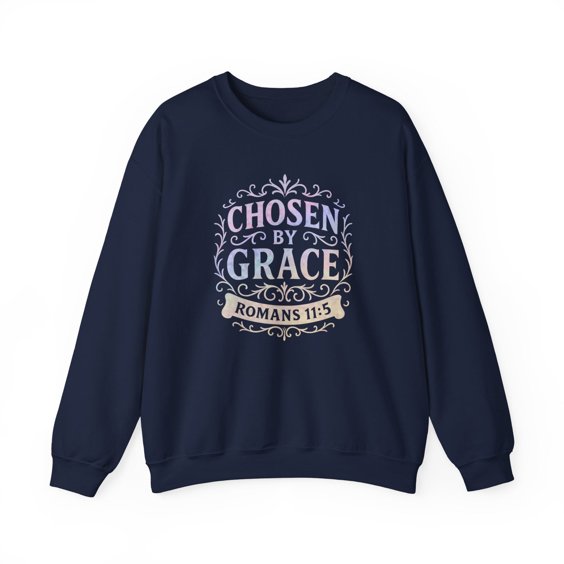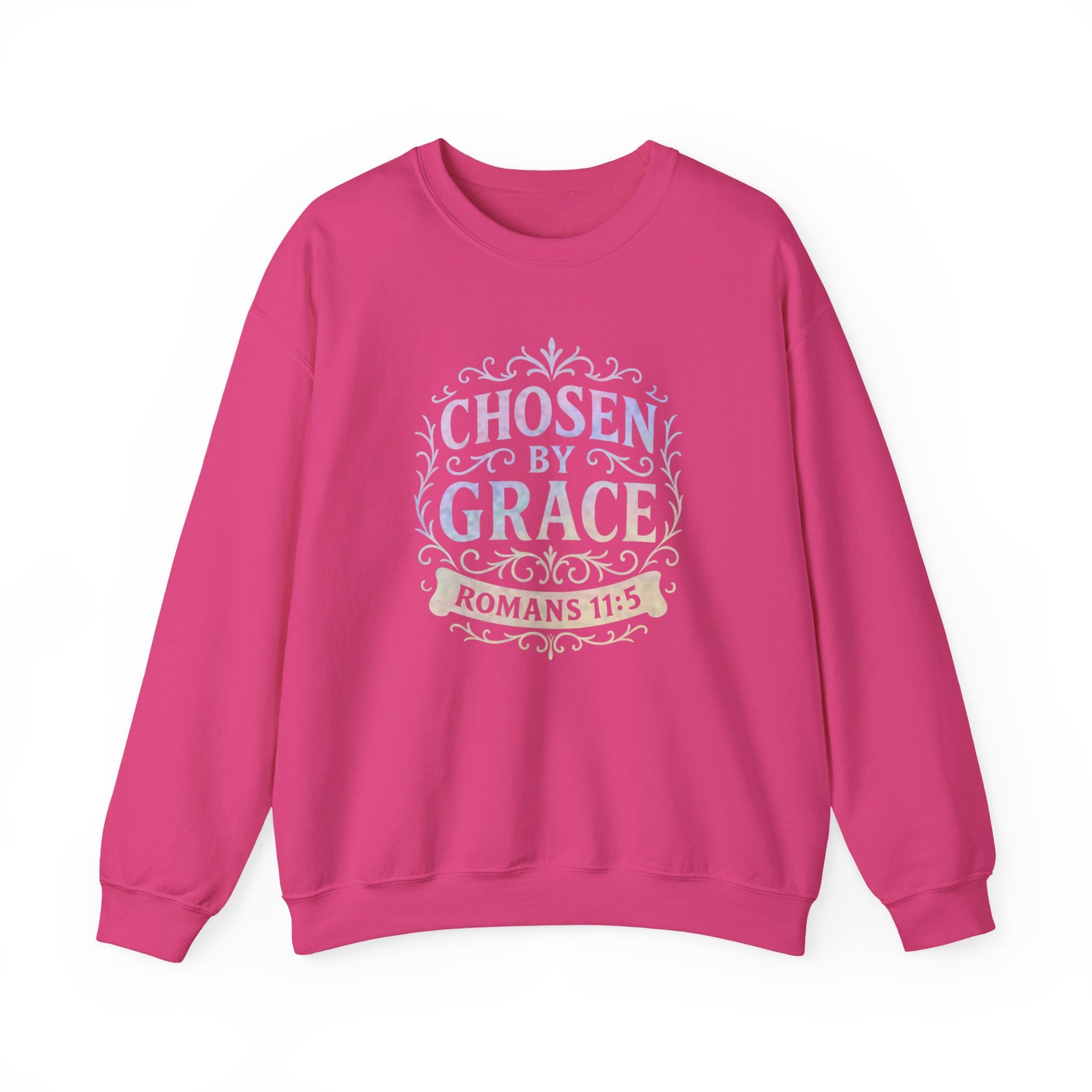 Chosen by Grace (Multi-color Limited Edition) Unisex Crewneck Sweatshirt - Inspirational Apparel, Faith-Based Fashion, Cozy Casual Wear, Bible Verse Sweatshirt