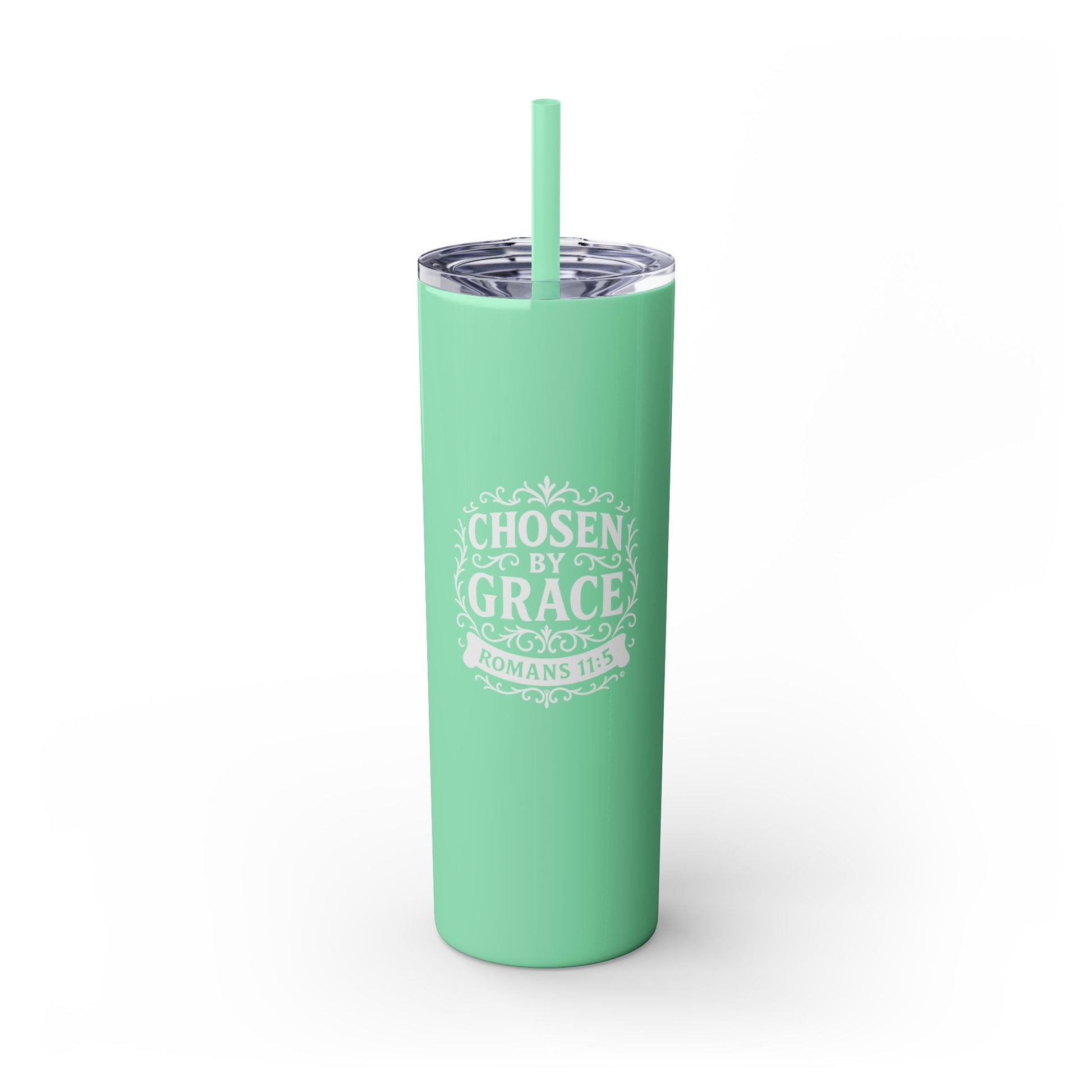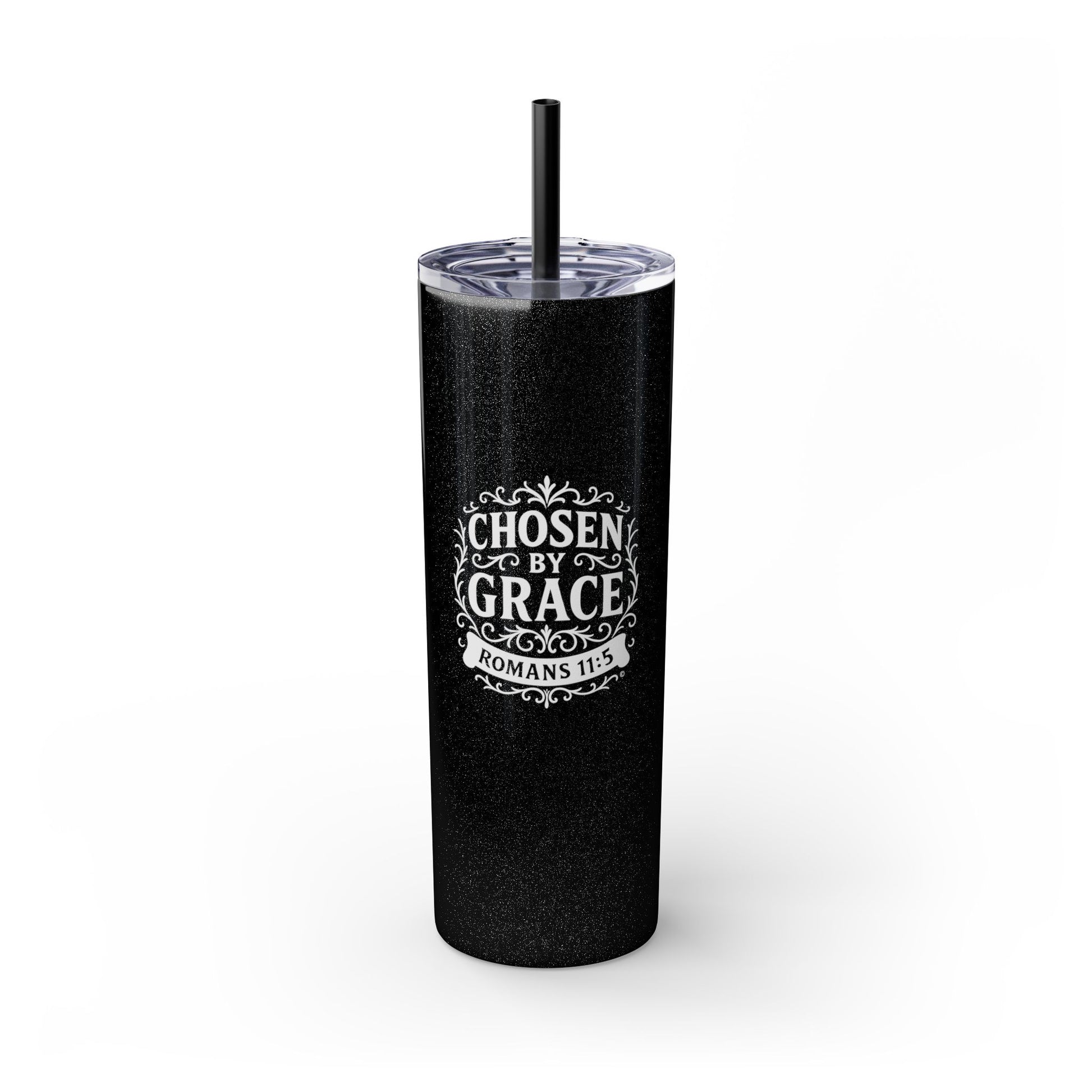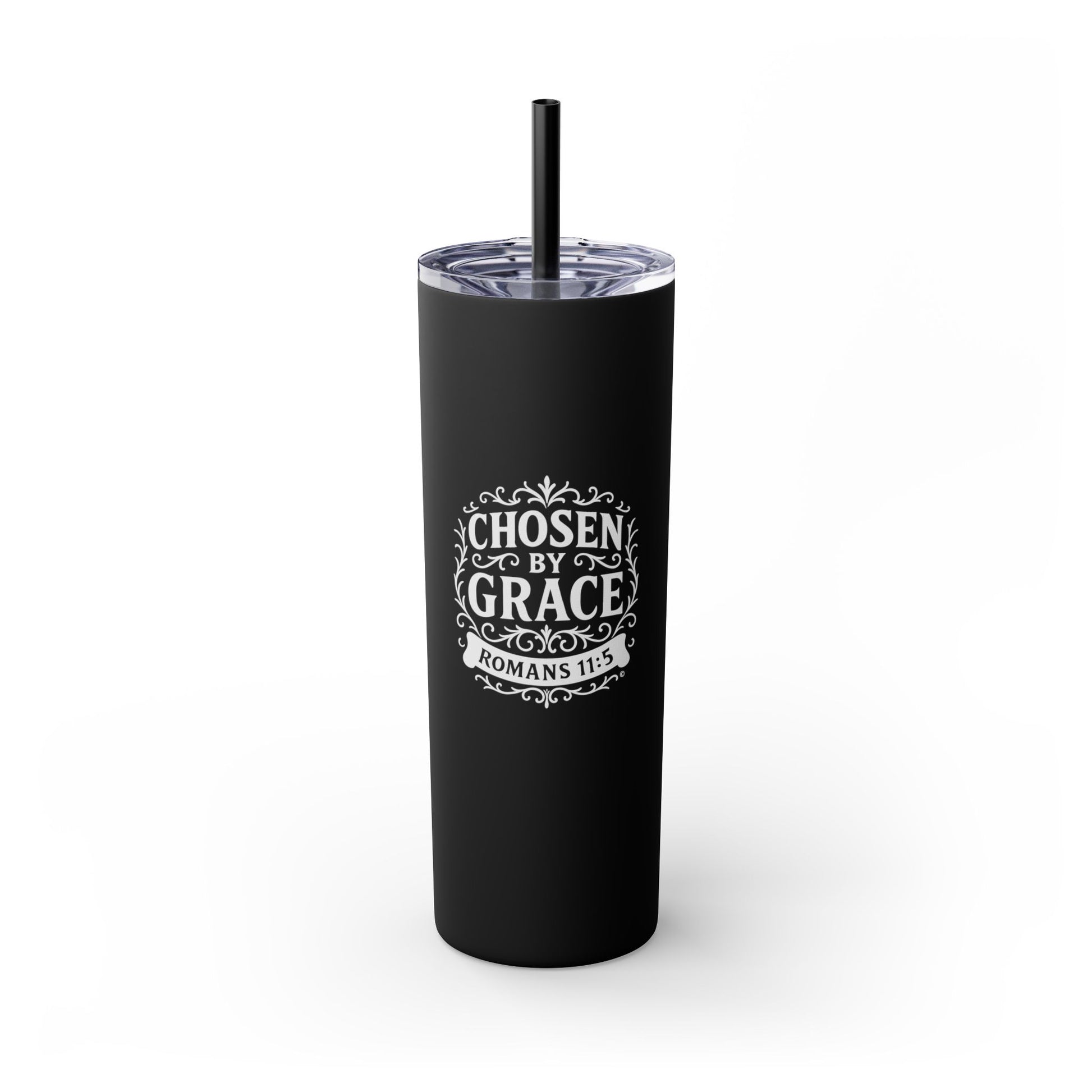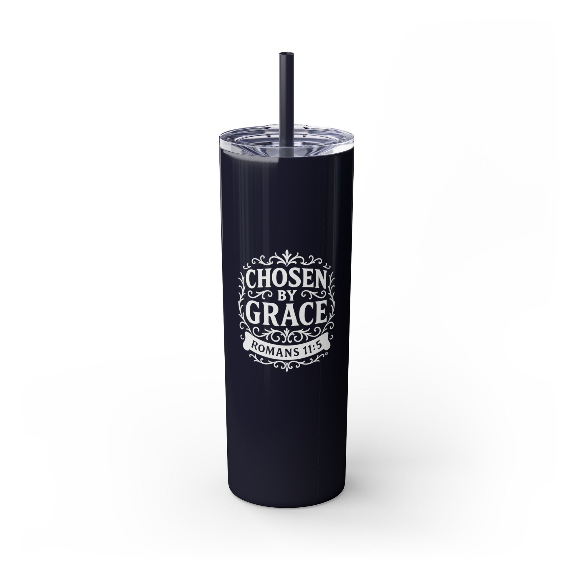 Chosen by Grace (White Lettering) 20oz Skinny Tumbler, Inspirational Travel Mug, Unique Gift for Faith Lovers, Bible Verse Drinkware, Motivational Water Bottle