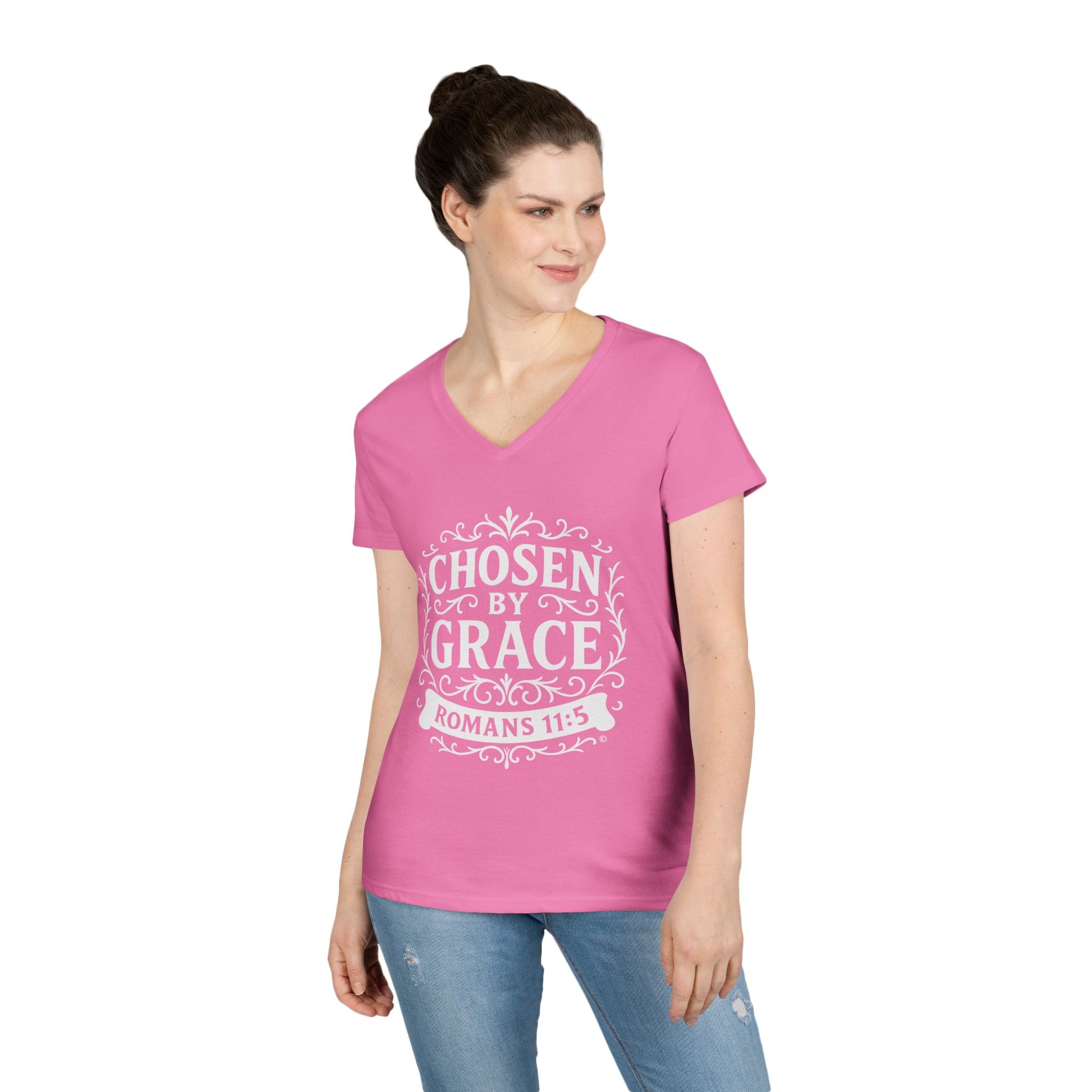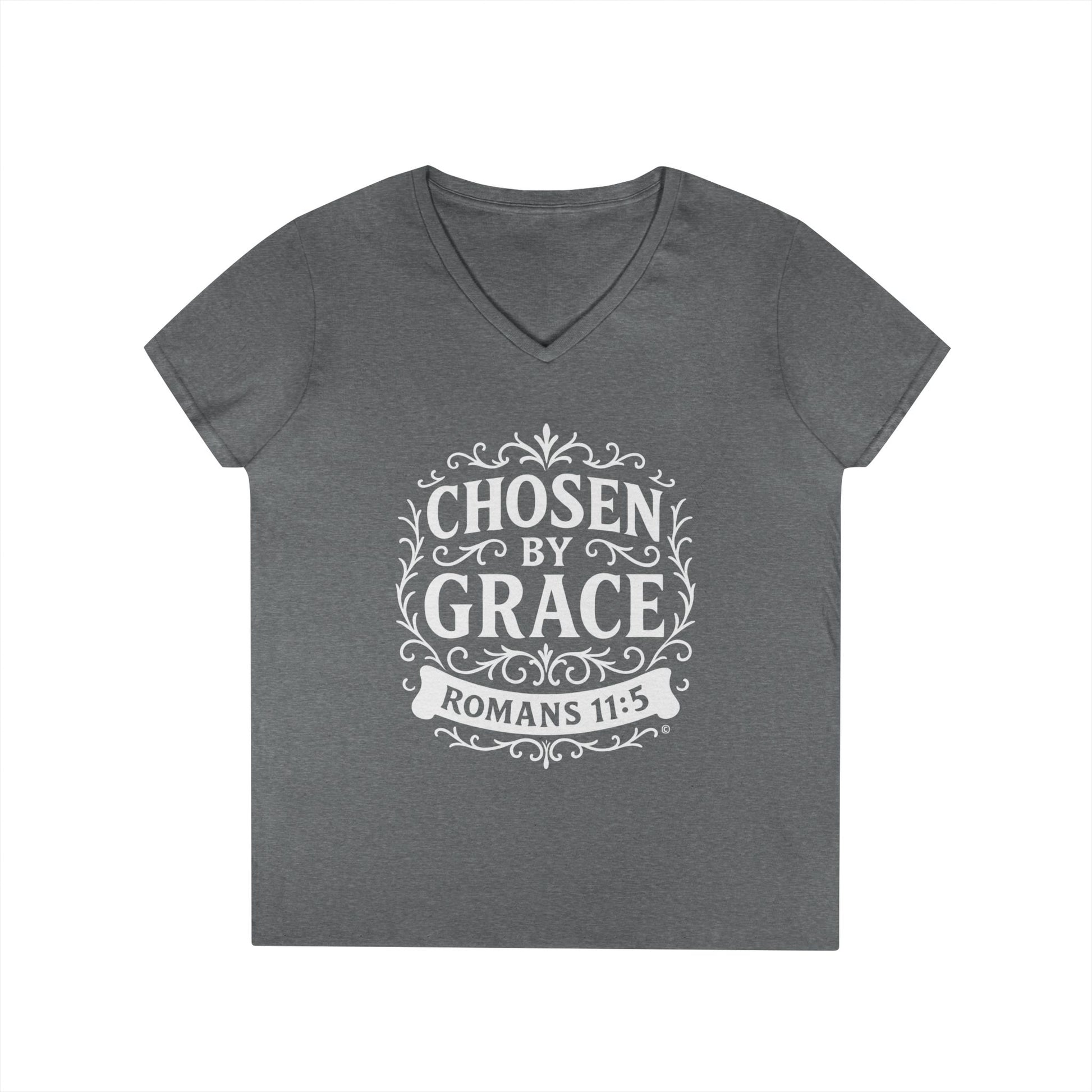 Chosen by Grace (White Lettering) Ladies V-Neck T-Shirt, Inspirational Gift, Faith-Based Gift