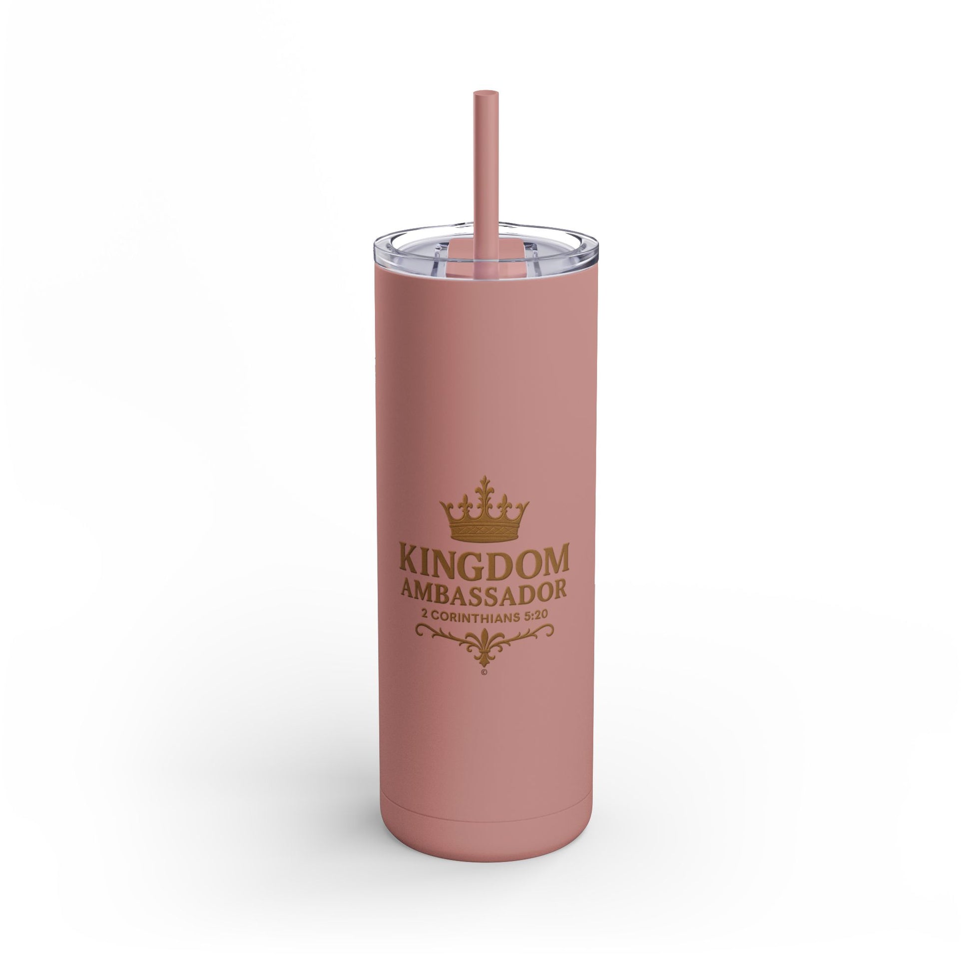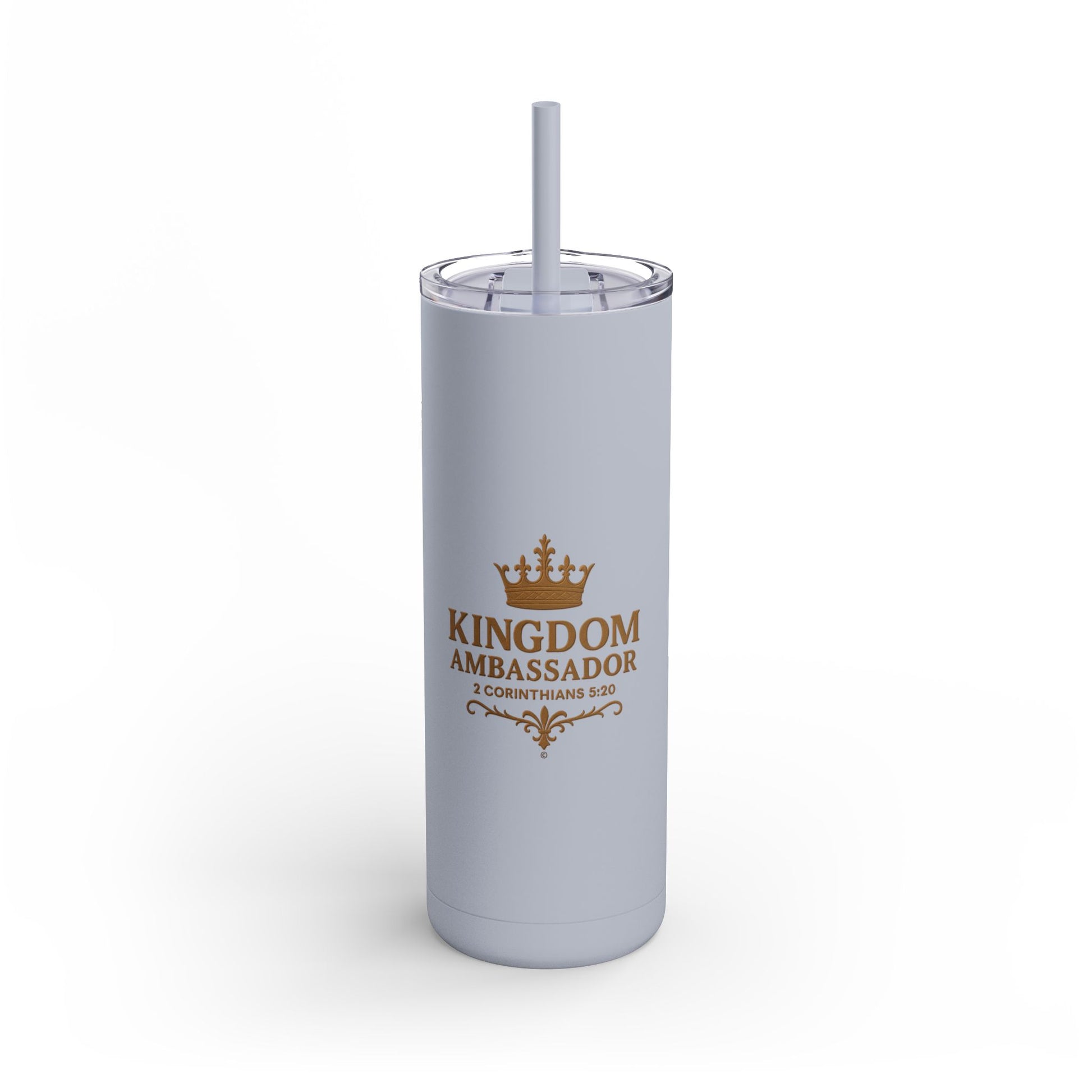 Kingdom Ambassador (Gold Lettering) 20oz Skinny Tumbler, Inspirational Travel Mug, Unique Gift for Faith Lovers, Bible Verse Drinkware, Motivational Water Bottle