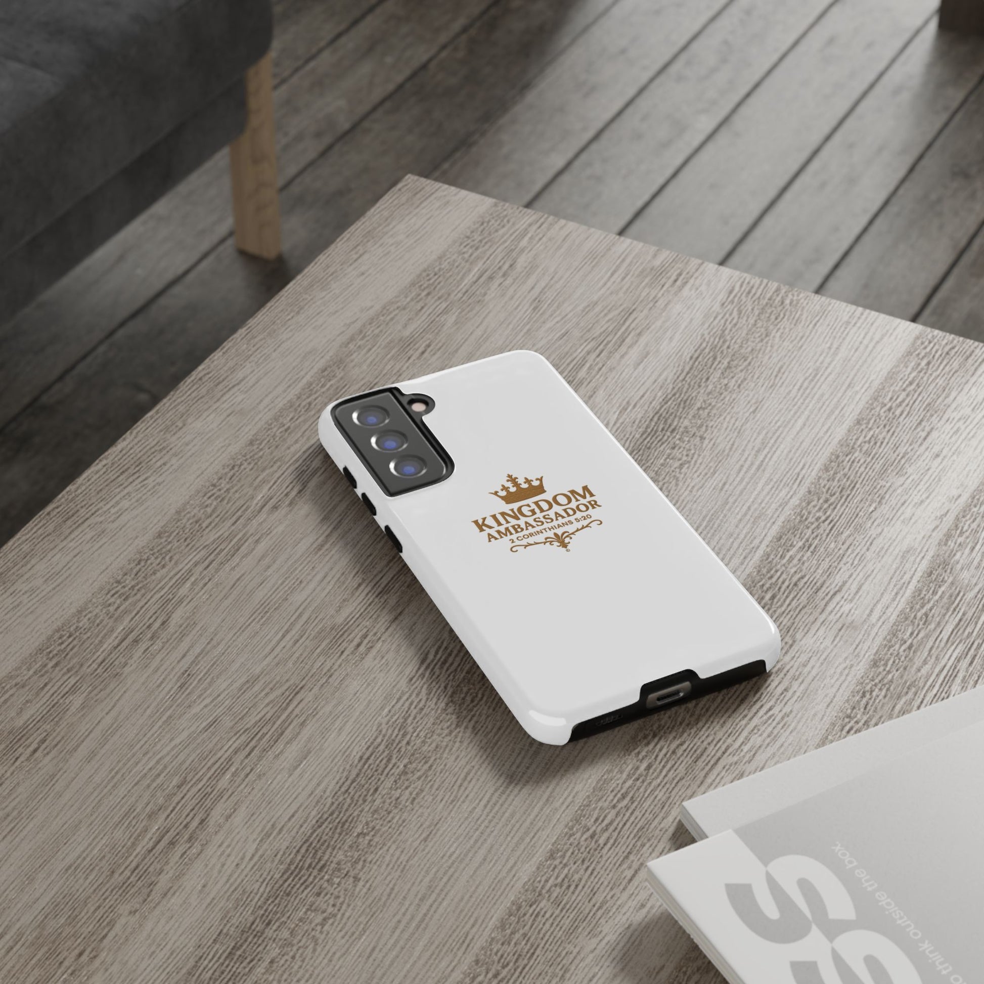 Kingdom Ambassador (Gold Lettering) Rugged Phone Case, Inspirational Mobile Cover, Gift for Faith Lovers, Faith-Based Protector