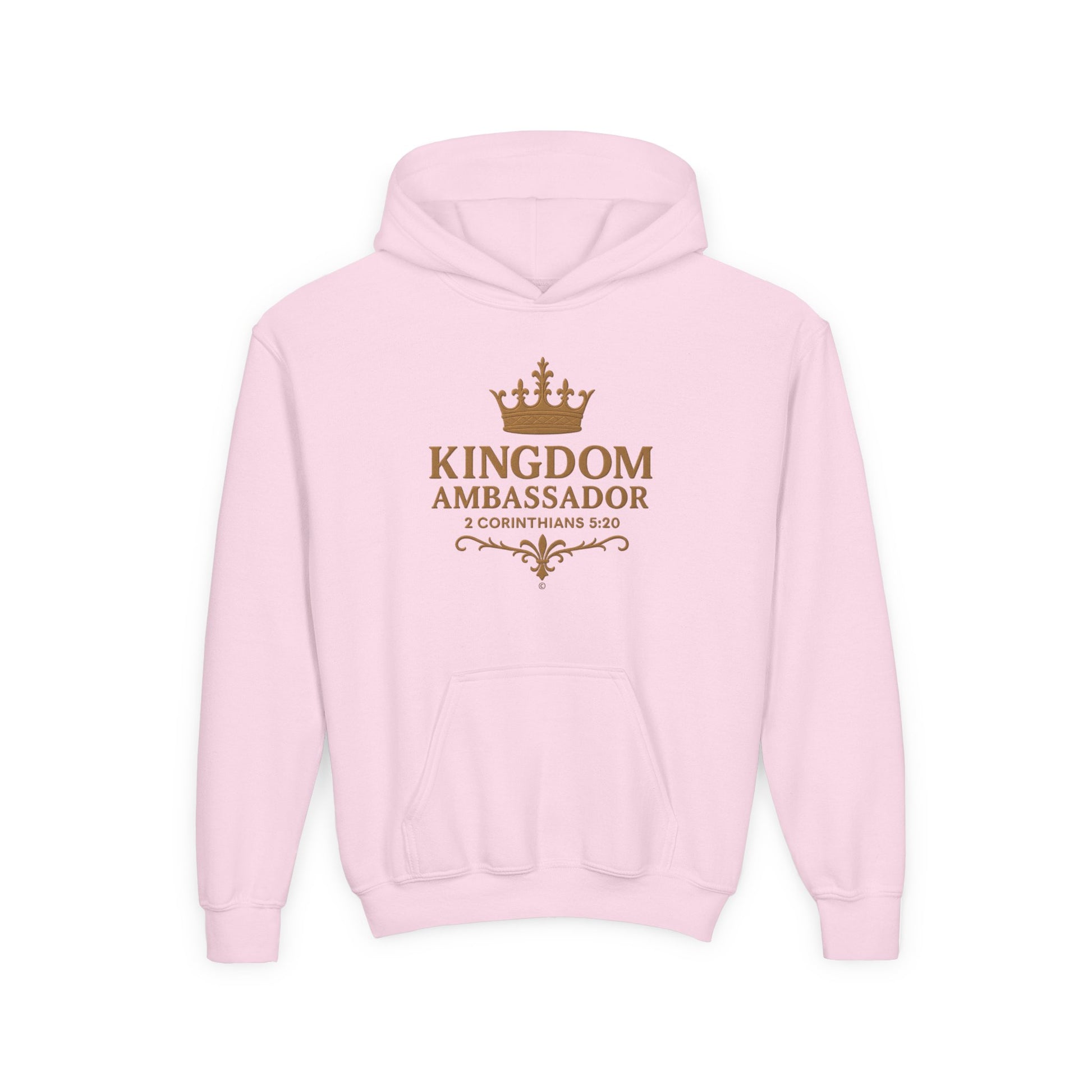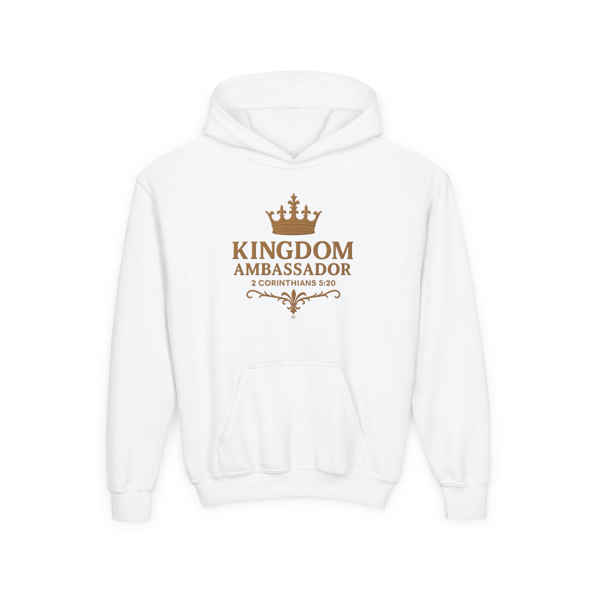 Kingdom Ambassador (Gold Lettering) Youth Hooded Sweatshirt, Inspirational Youth Pullover Sweatshirt, Faith-Based Gift, Biblical Apparel