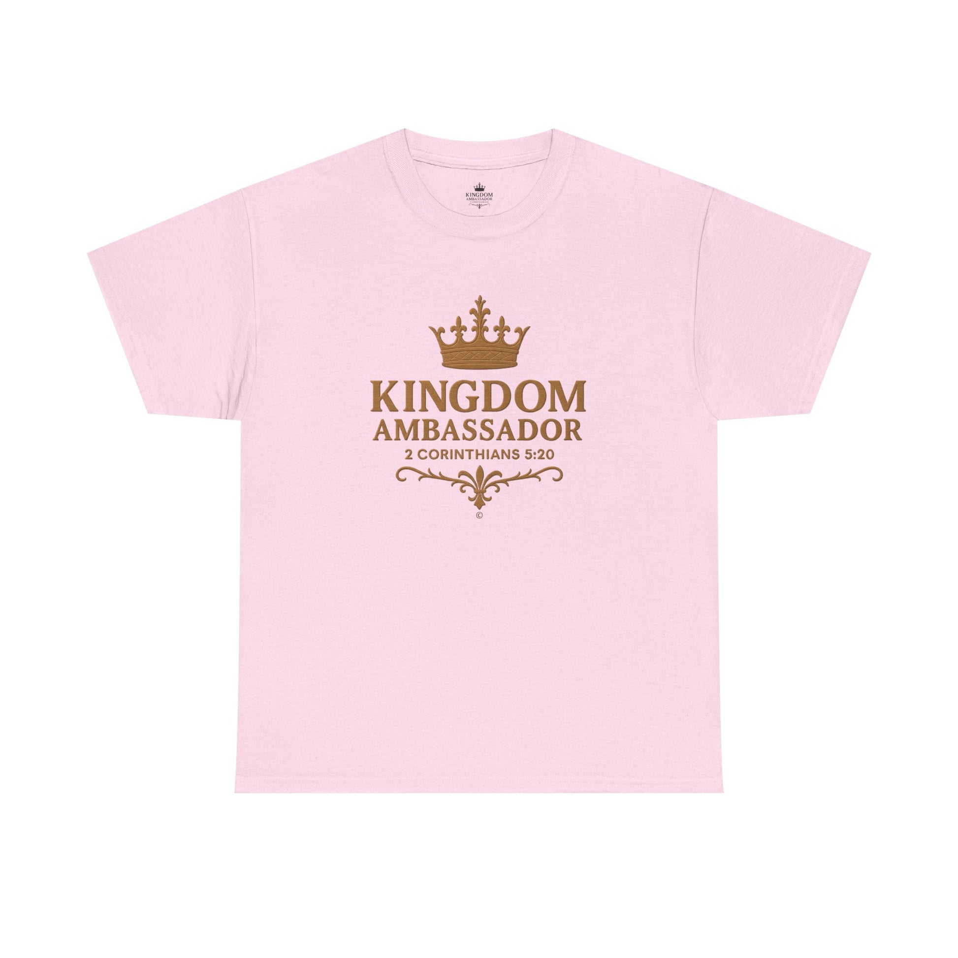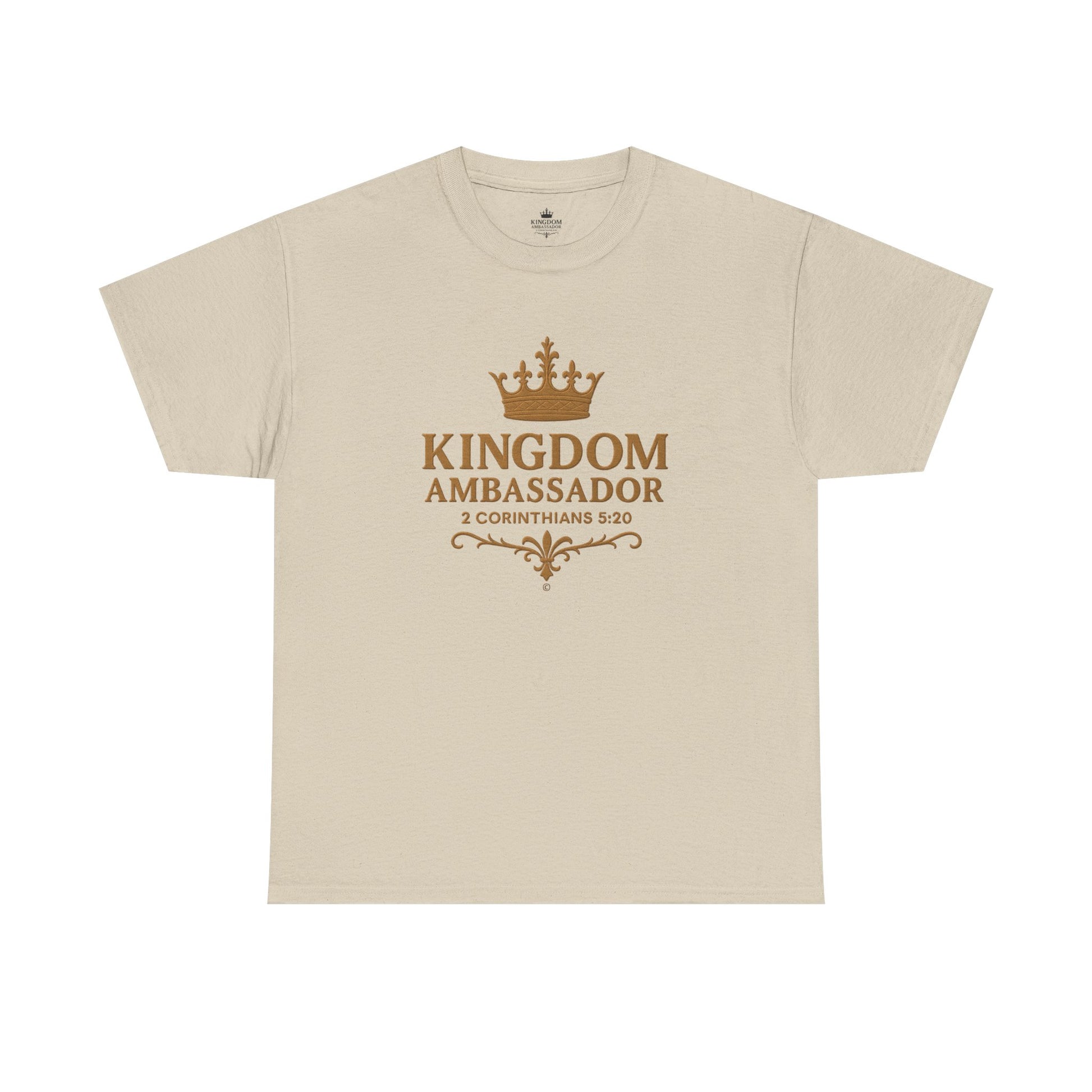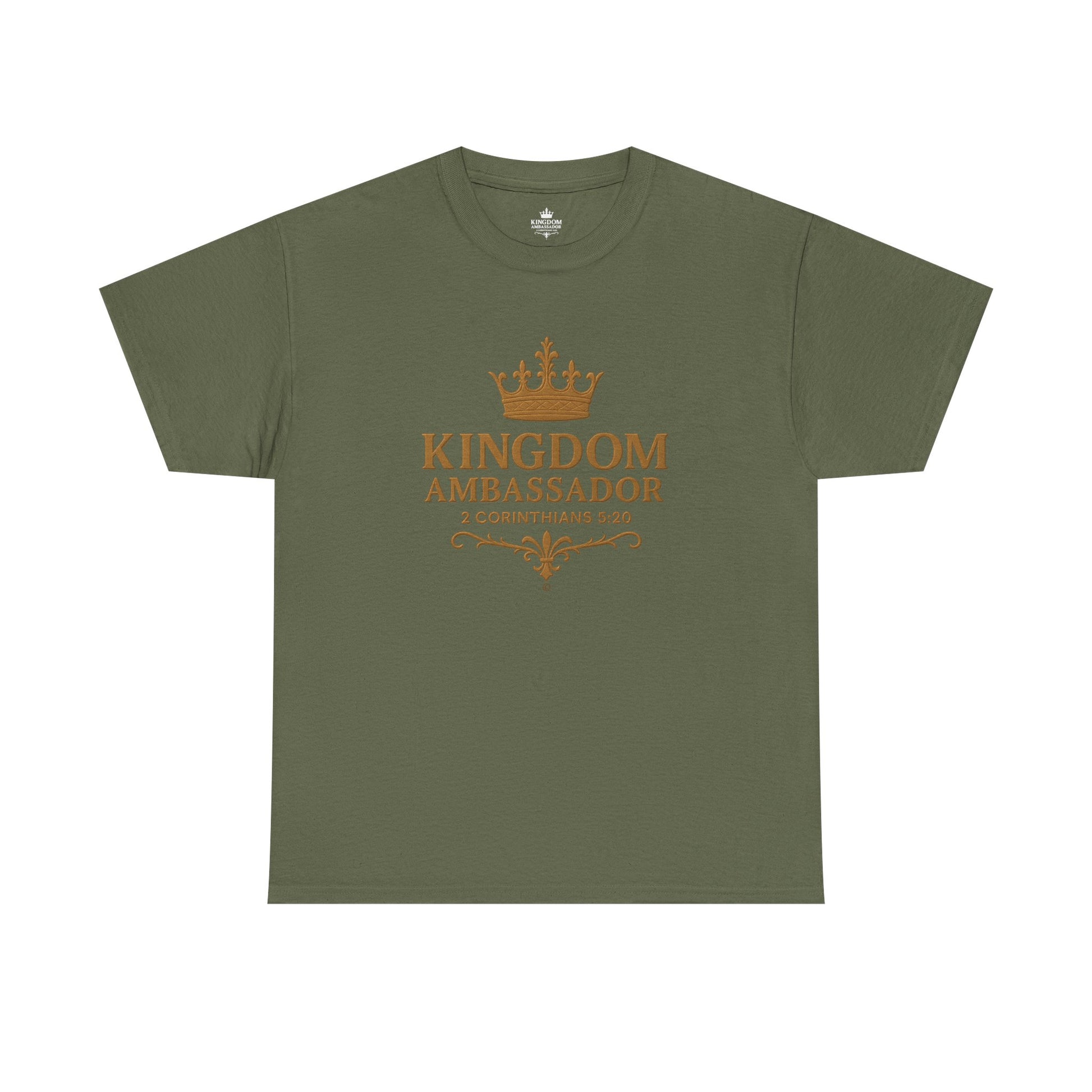 Kingdom Ambassador (Gold Lettering) Tee | Unisex Heavy Cotton Shirt, Faith-Based Apparel, Christian T-Shirt, Inspirational Gift, Scripture Tees