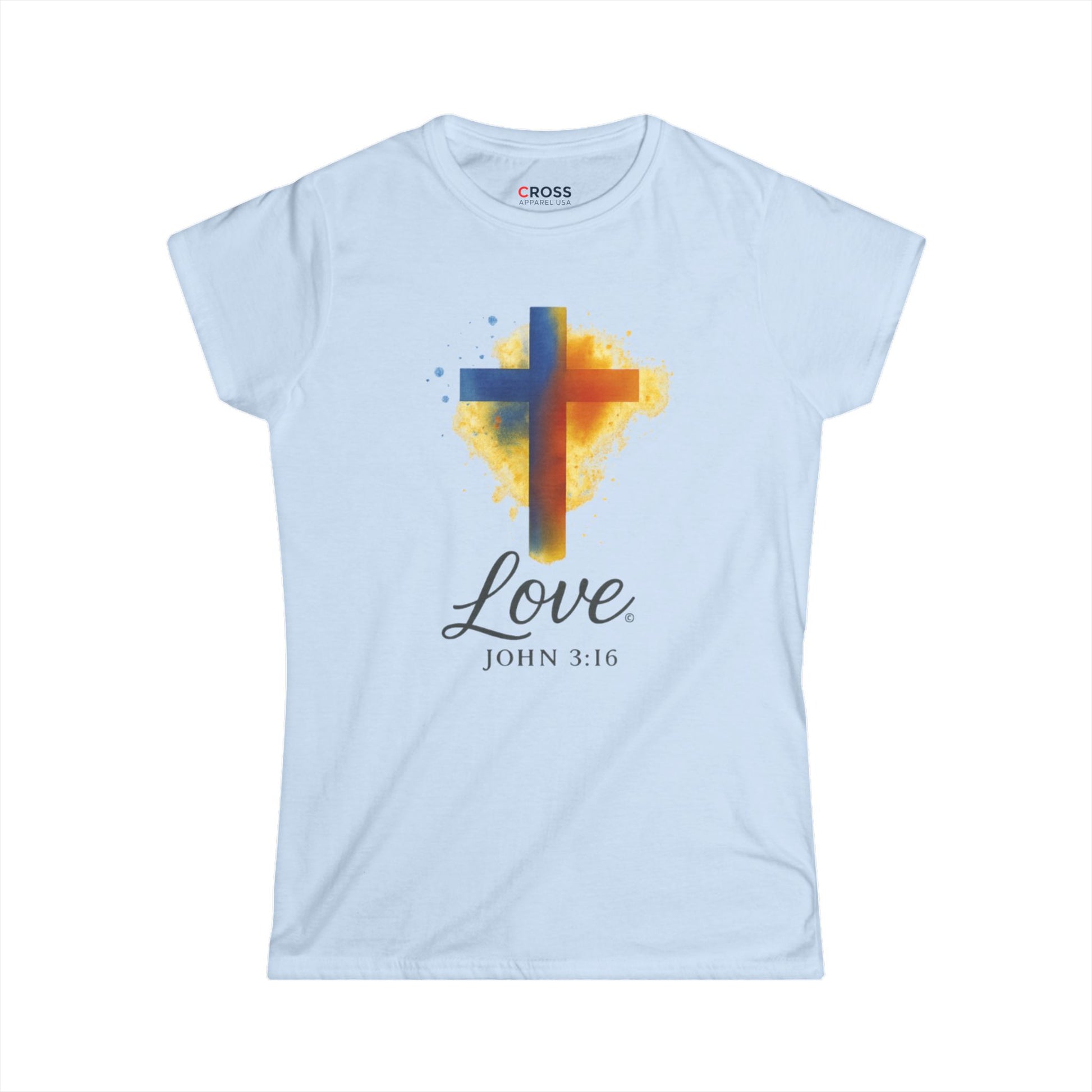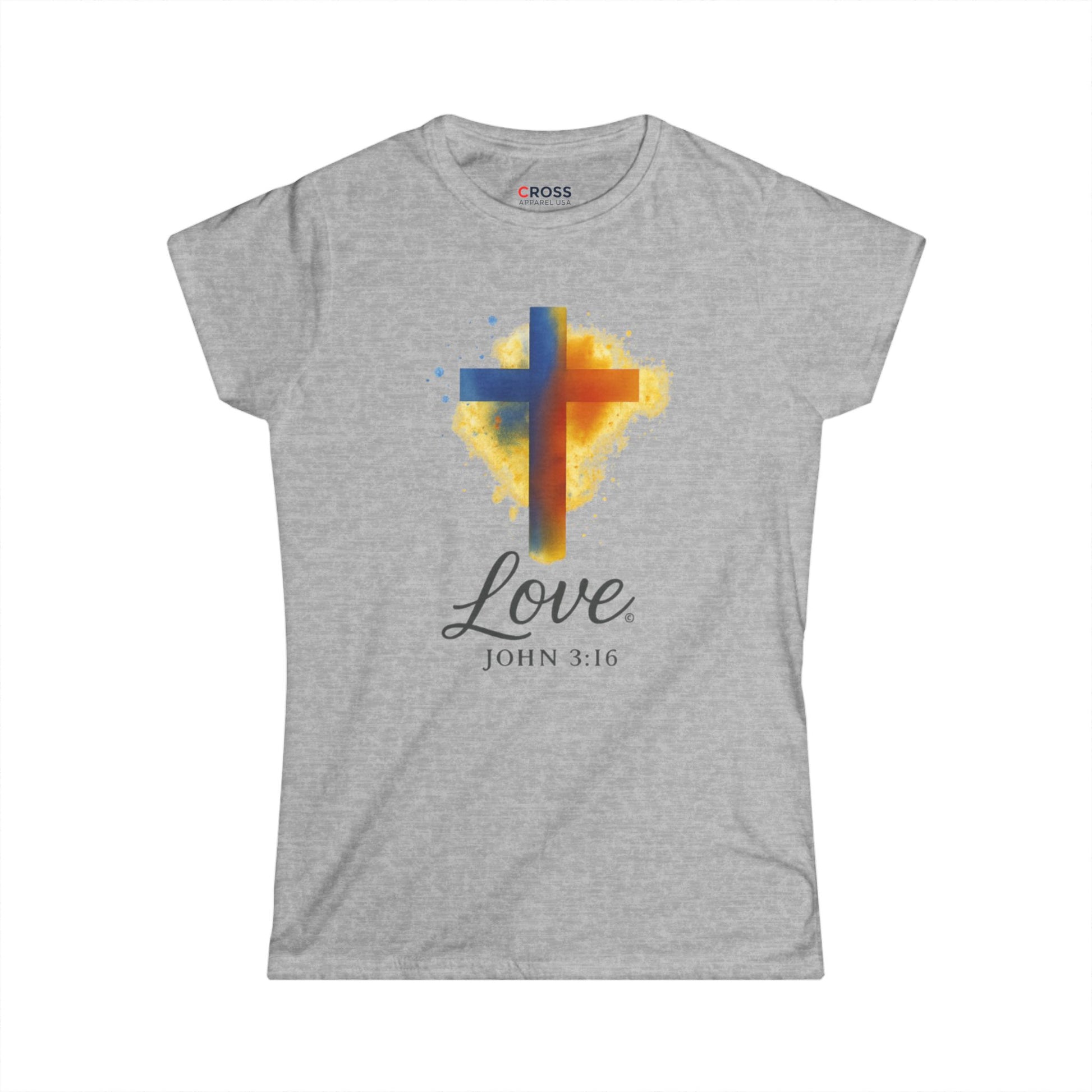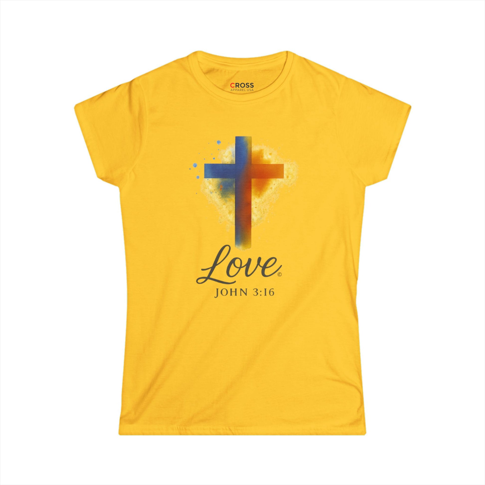 The woman's softstyle tee is a more feminine take on the classic tee. The sleeves are shortened to reveal some shoulder. The fabric is 100% ringspun cotton for all solid colors. The shoulders are taped with twill to prolong durability. The collar seam is reinforced with ribbed knitting.