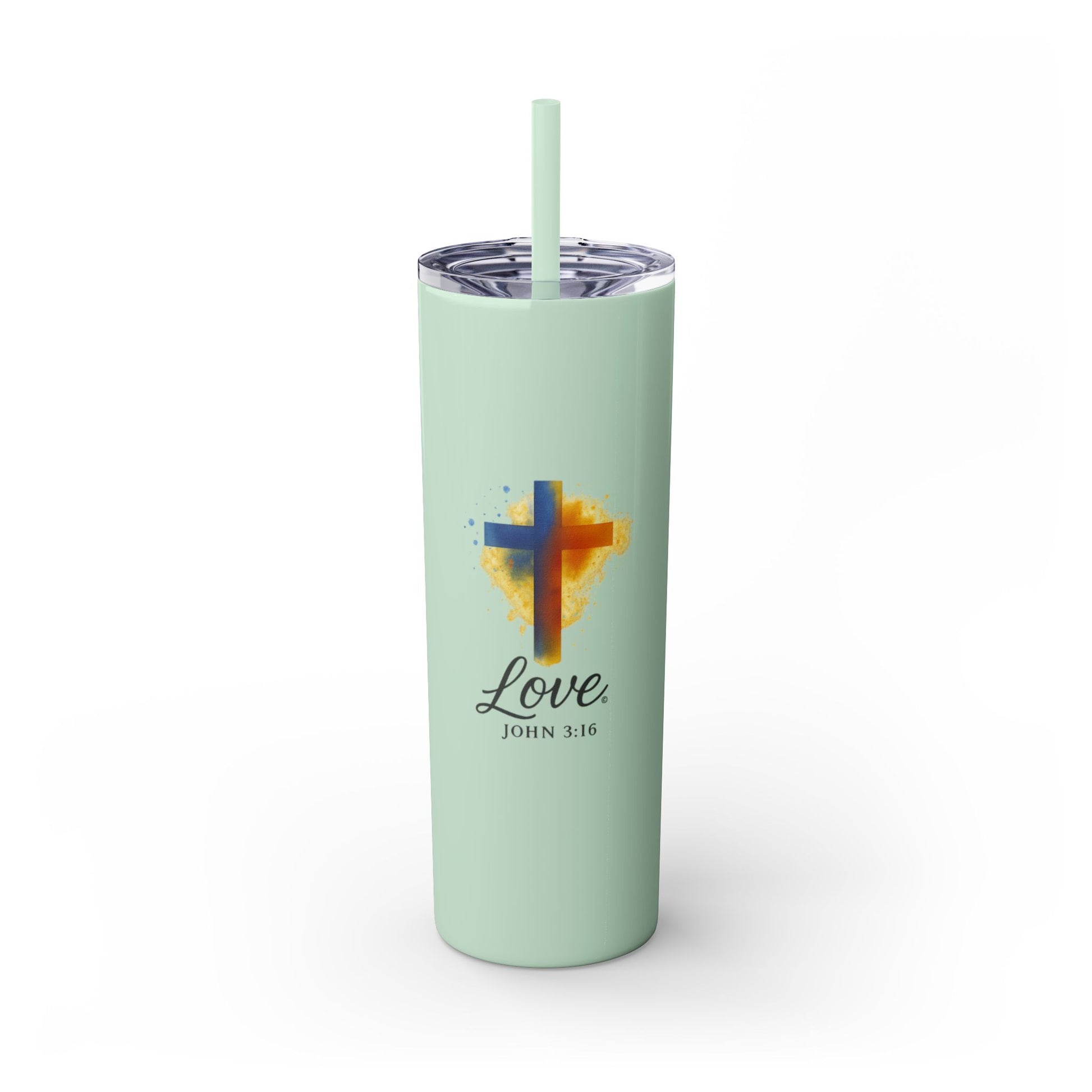 Love (Full Color) Skinny Tumbler with Straw, 20oz, Inspirational Drinkware, Gift for Believers, Devotional Accessory, Everyday Use